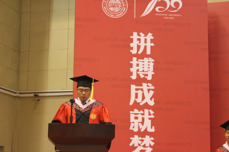 2020届体育教育专业本科生、国家奖学金获得者赵兵、2020届优秀毕业研究生金桂琳分别上台分享了她们在苏大学习生活的点点滴滴。